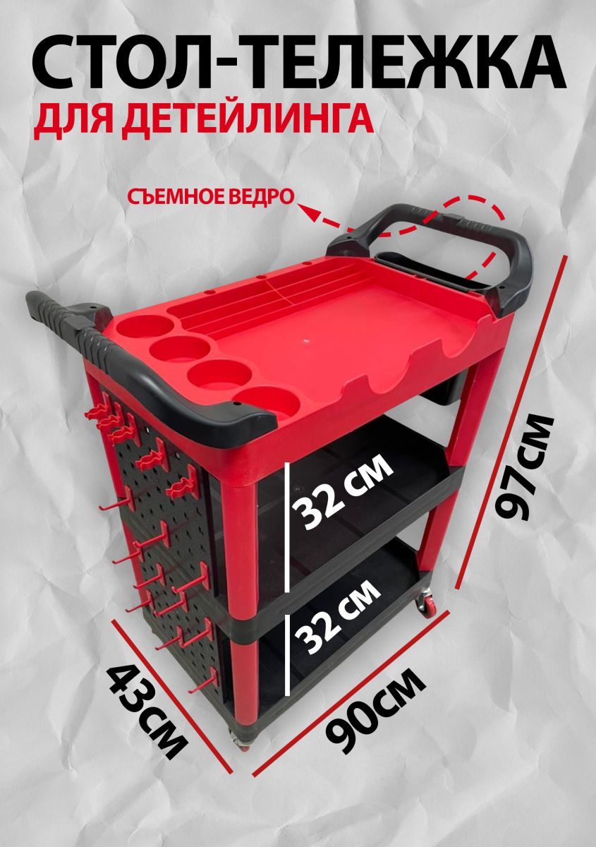 Стол-тележка для детейлинга красная